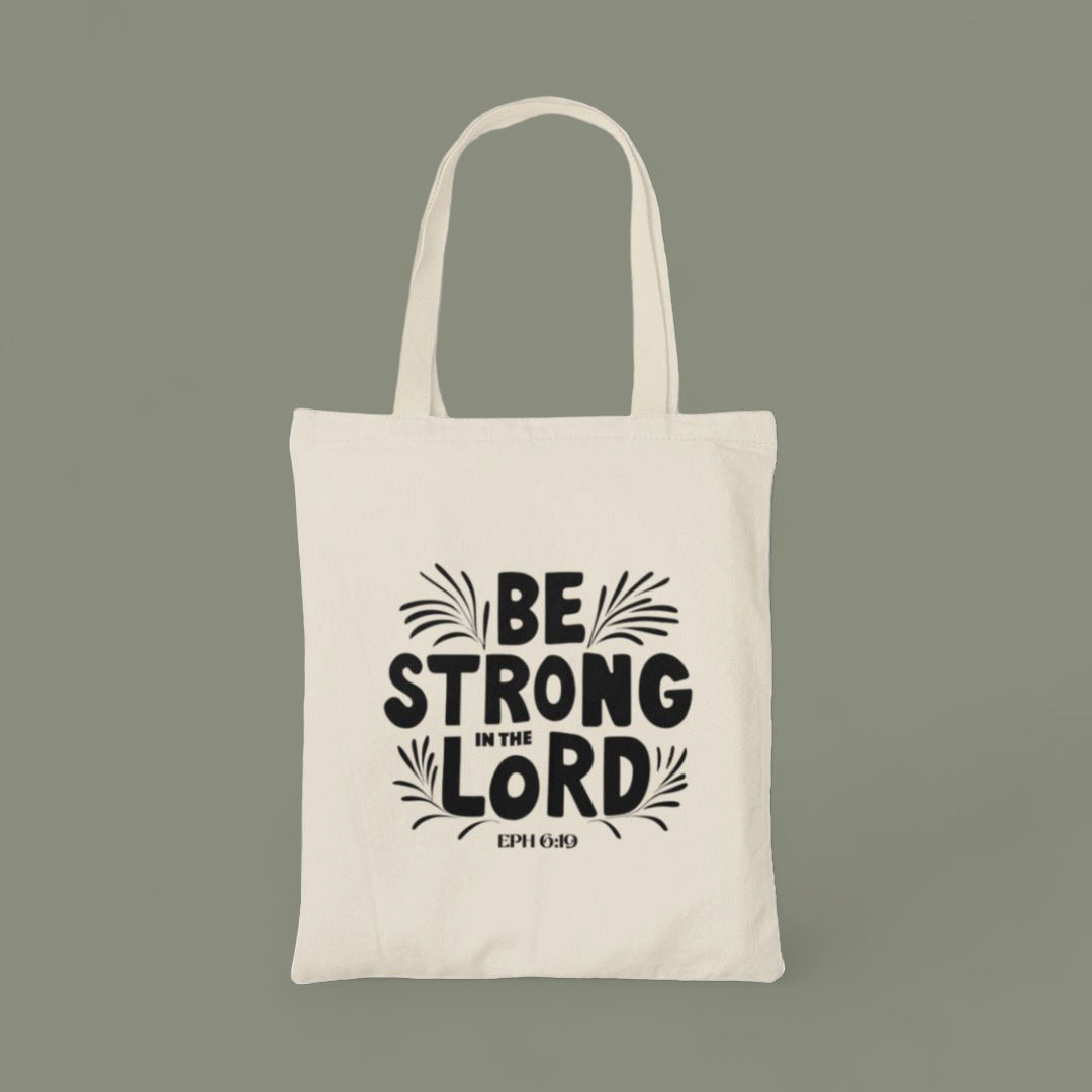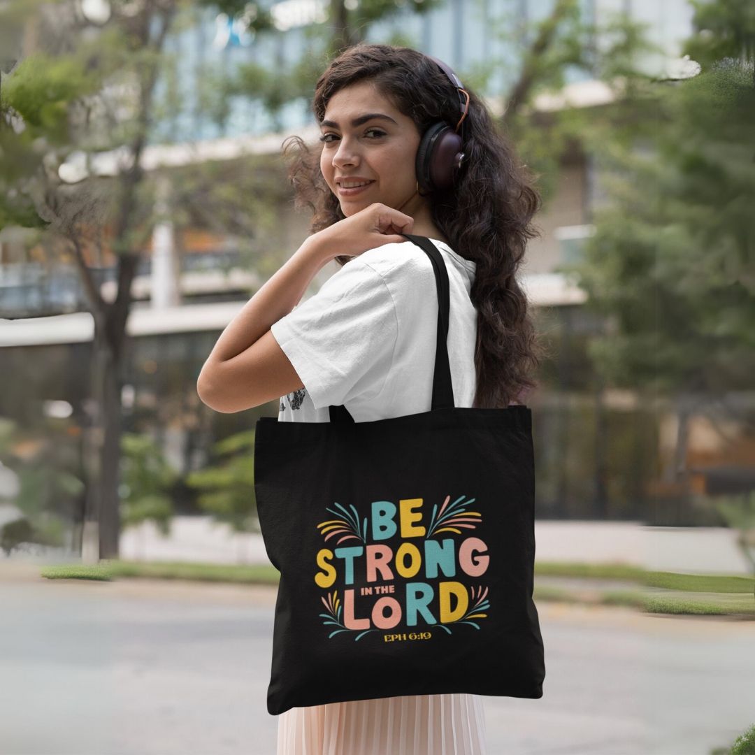 Celebrate the abundance of blessings in your life with each step you take. Elevate your daily essentials with the "Be Strong In The Lord" Christian Canvas Tote Bag, available in classic black or natural white. Carry your faith and blessings with style, and inspire others along the way. Don't miss out – secure your Christian canvas tote bag today and embrace your journey with gratitude and grace!