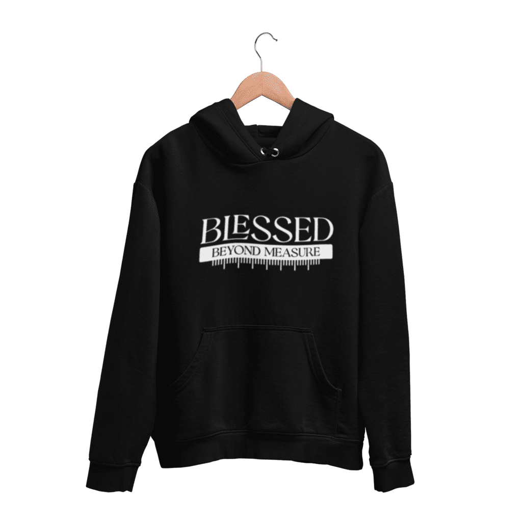 Waking up on a Cold or Rainy day putting on this Hoodie and thinking how blessed I am to see this beautiful morning. Are we really grateful that God has blessed us beyond measure. Look around you, the trees, flowers, birds, each one of them clothed so beautifully by this awesome God and can you imagine how wonderfully He has made you in His image. Let whatever we wear, speak out loud that we are blessed beyond measure. This design has been creatively handcrafted so that it will speak out a message to anyone who takes a glimpse at it.#blessedbeyondmeasure