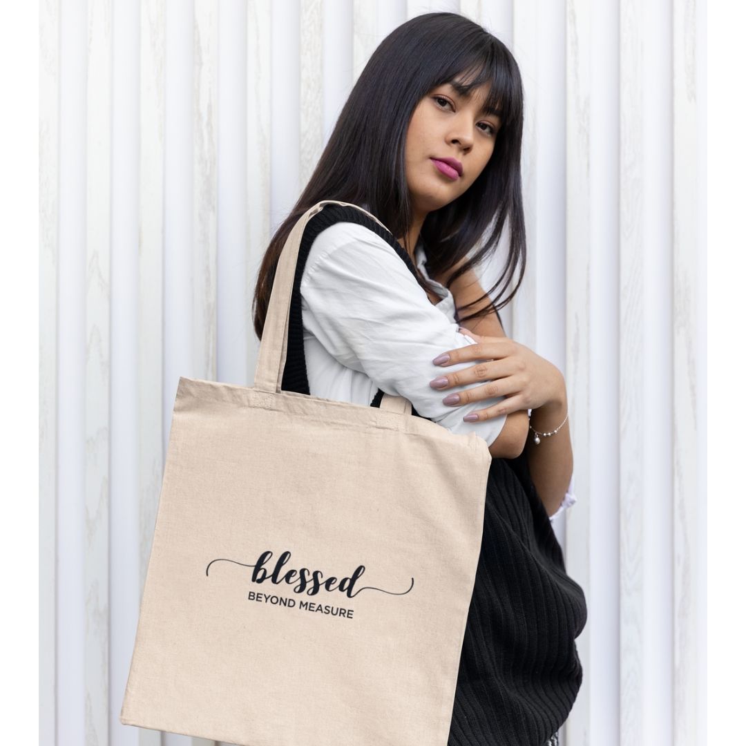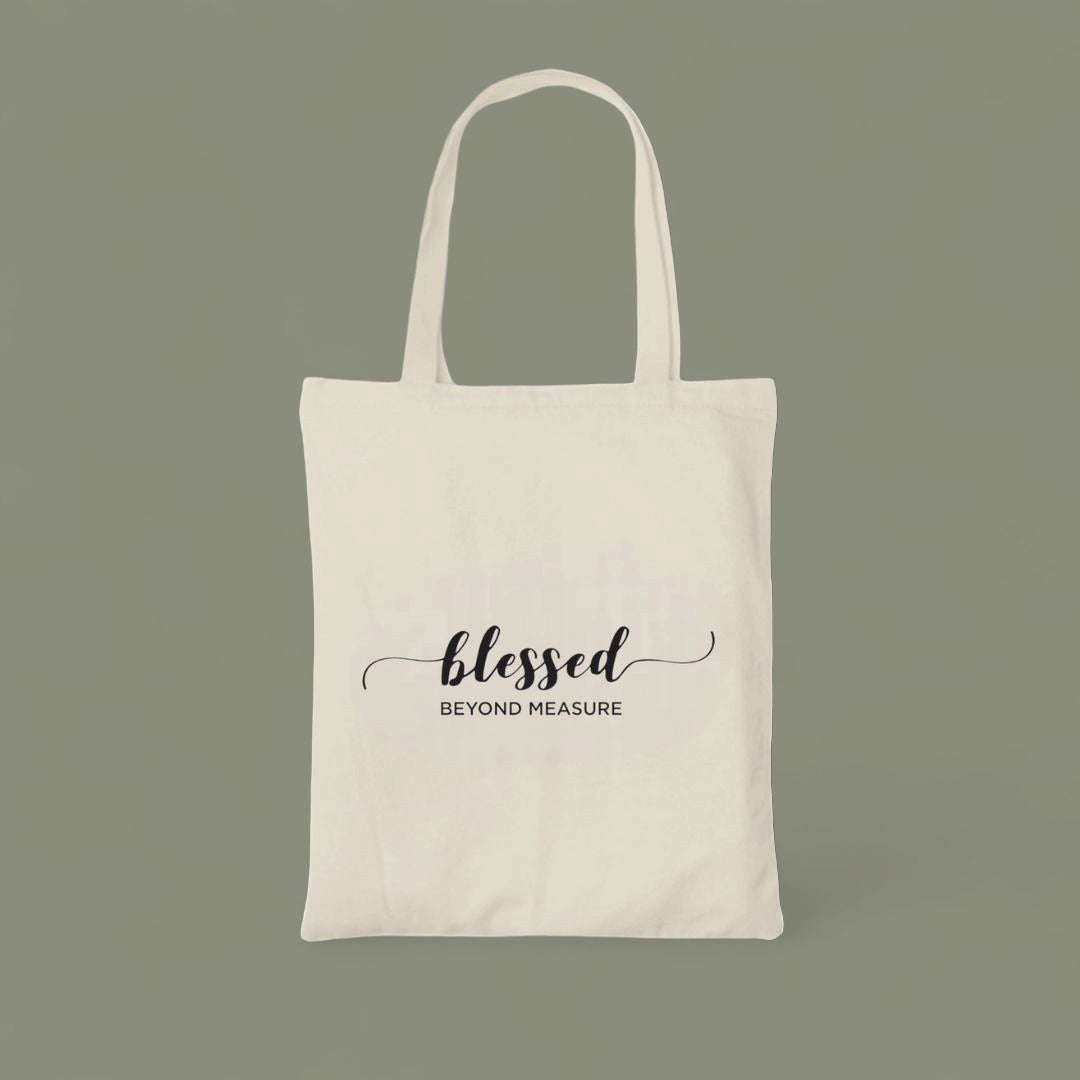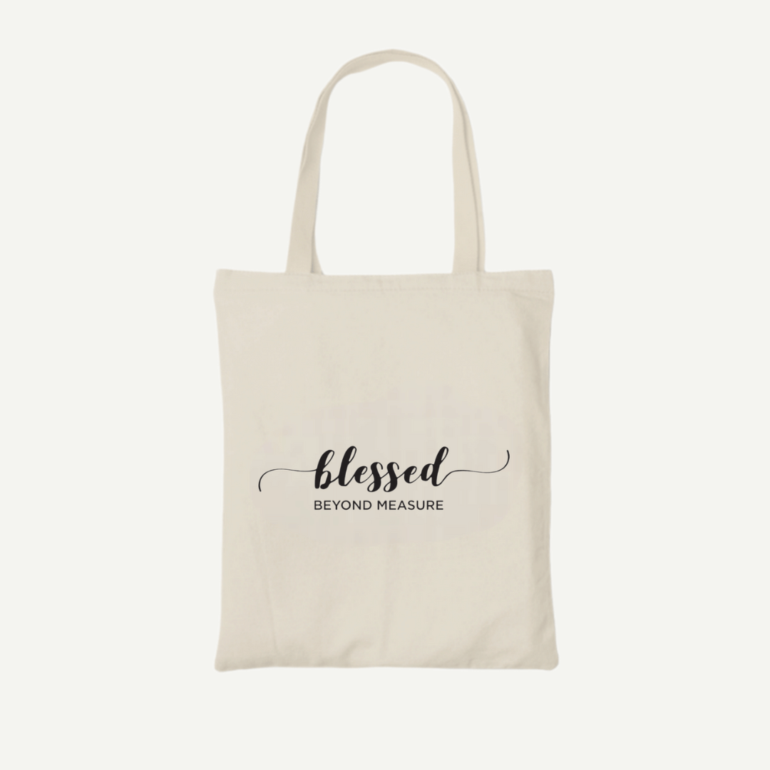 Celebrate the abundance of blessings in your life with each step you take. Elevate your daily essentials with the "Blessed Beyond Measure" Christian Canvas Tote Bag, available in classic black or natural white. Carry your faith and blessings with style, and inspire others along the way. Don't miss out – secure your Christian canvas tote bag today and embrace your journey with gratitude and grace!