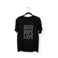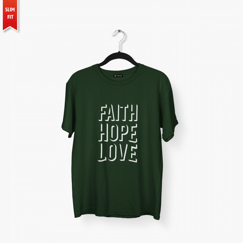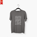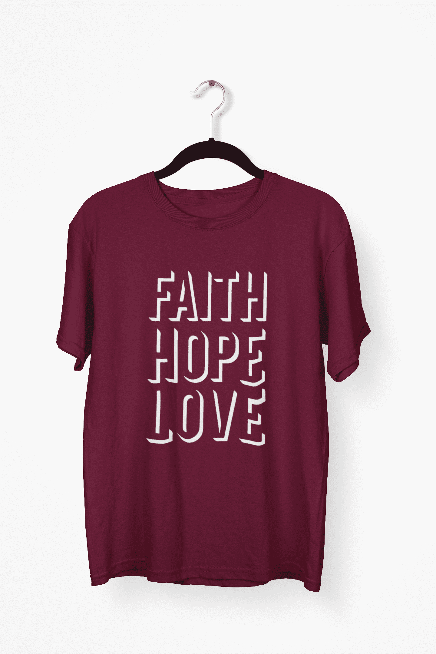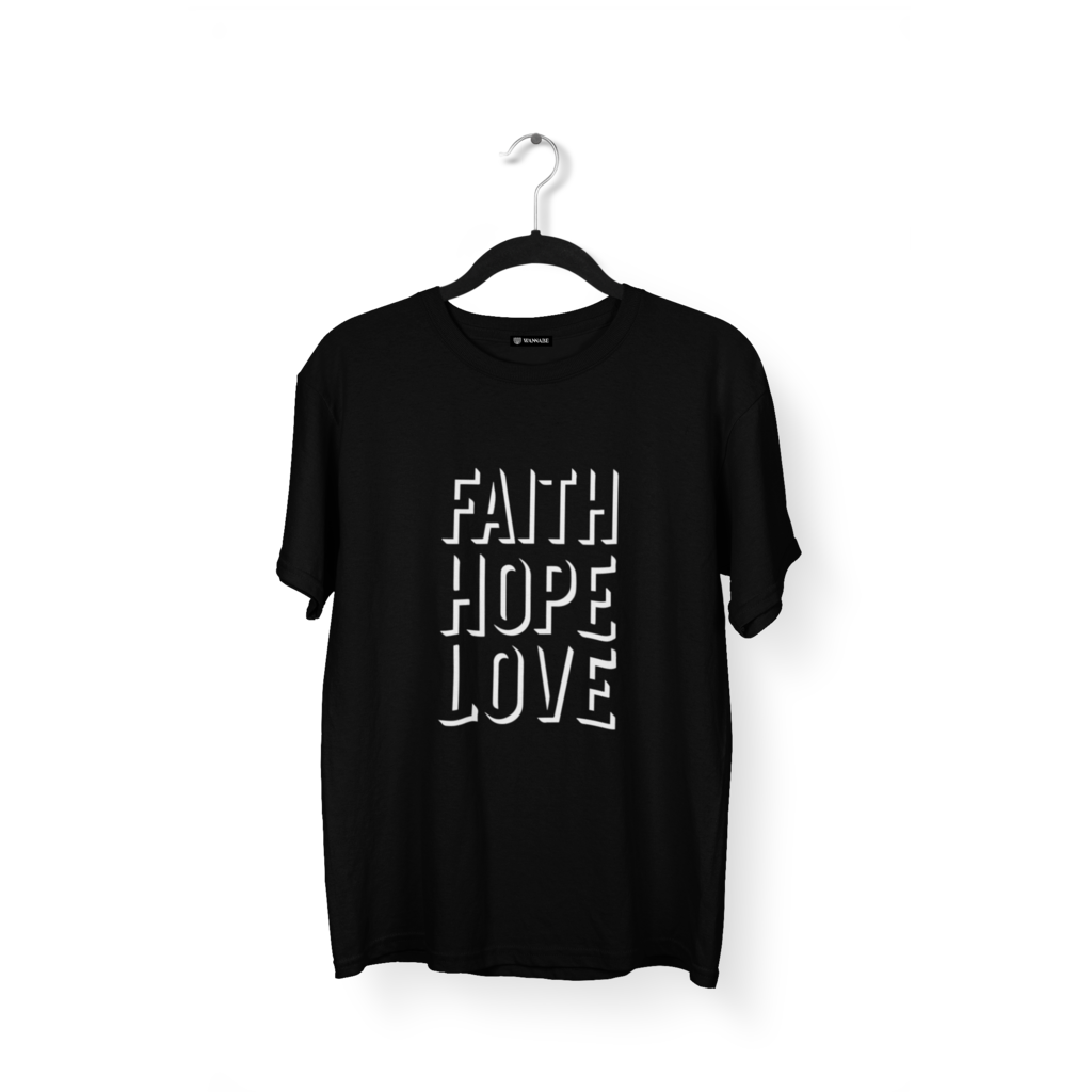 Youth Fashion may change but faith, hope, and love...never go out of style! #FaithHopeLove. How you ever tried to find the meaning? The Bible says, “And now these three remain: faith, hope and love. But the greatest of these is love.” The greatest power of our lives is contained in this. We just have the task of unfolding the purpose behind it to connect to it. The very best way is to keep the faith, be hopeful for a better tomorrow and to love others is to show up for them. Share the Good News with them when the opportunity comes up. Apparels are a fantastic way to communicate this. Wearing this T-shirt as a symbol about God’s love is a great way to start that conversation. Act now!