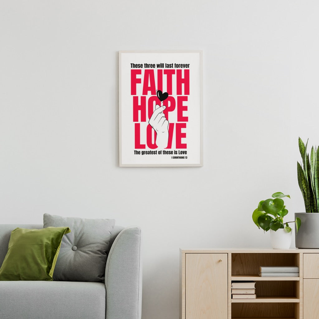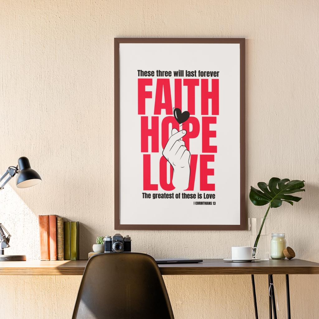 Ideal for personal reflection or as a heartfelt gift, the "Faith, Hope, Love" frame is not just a decoration but a celebration of the enduring principles that guide us. Available now in two versatile sizes, A4 and A3, to suit different spaces and preferences.