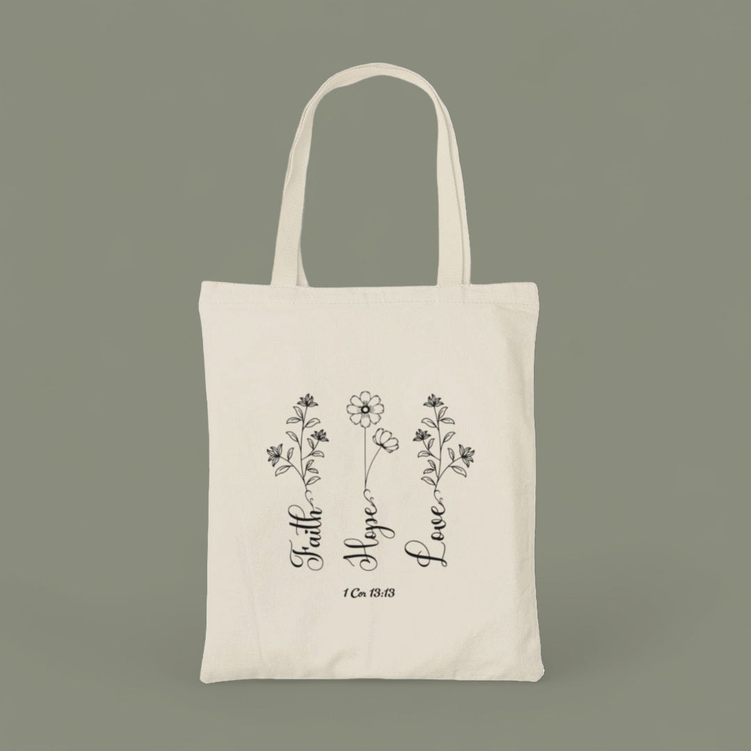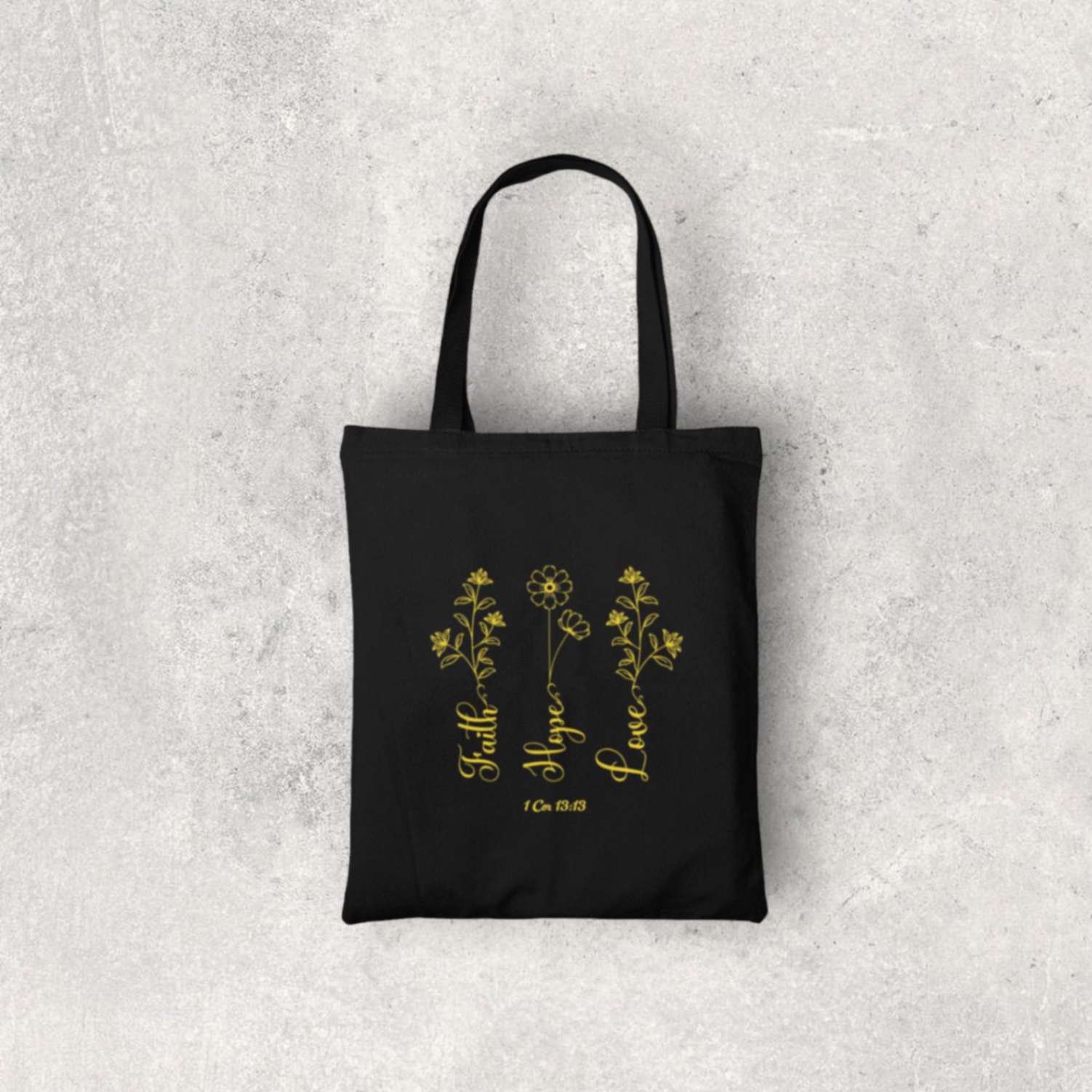Celebrate the abundance of blessings in your life with each step you take. Elevate your daily essentials with the "Faith Hope Love" Christian Canvas Tote Bag, available in classic black or natural white. Carry your faith and blessings with style, and inspire others along the way. Don't miss out – secure your Christian canvas tote bag today and embrace your journey with gratitude and grace!