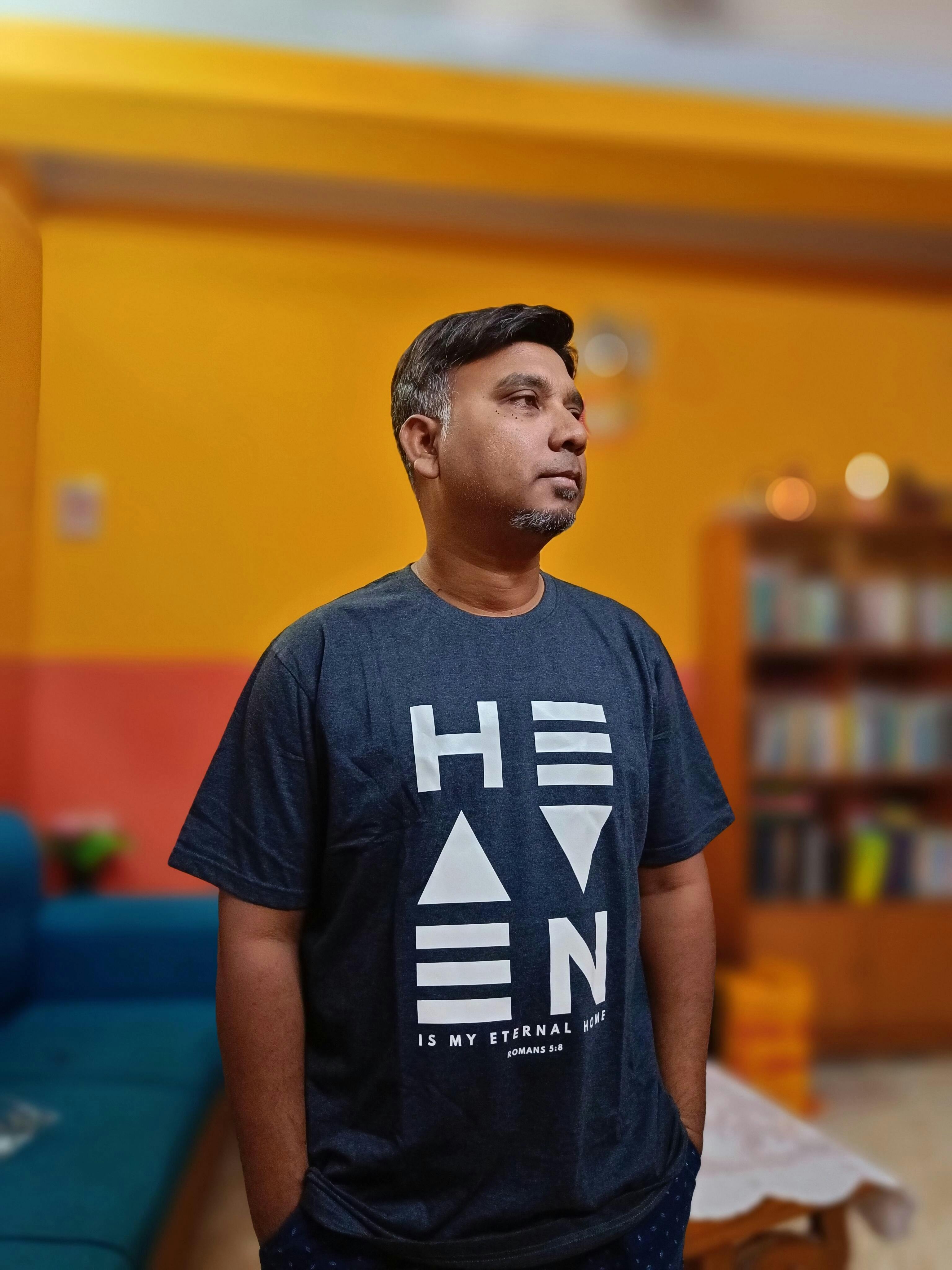 A design that points upward — Heaven is my eternal home, inspired by Romans 5:8.