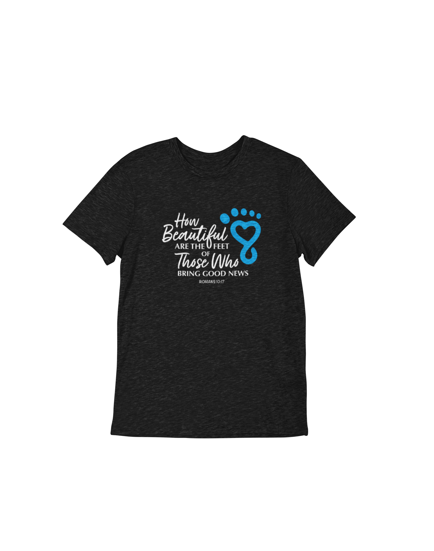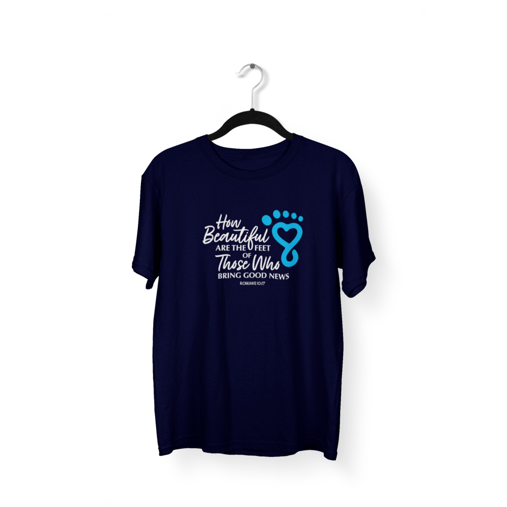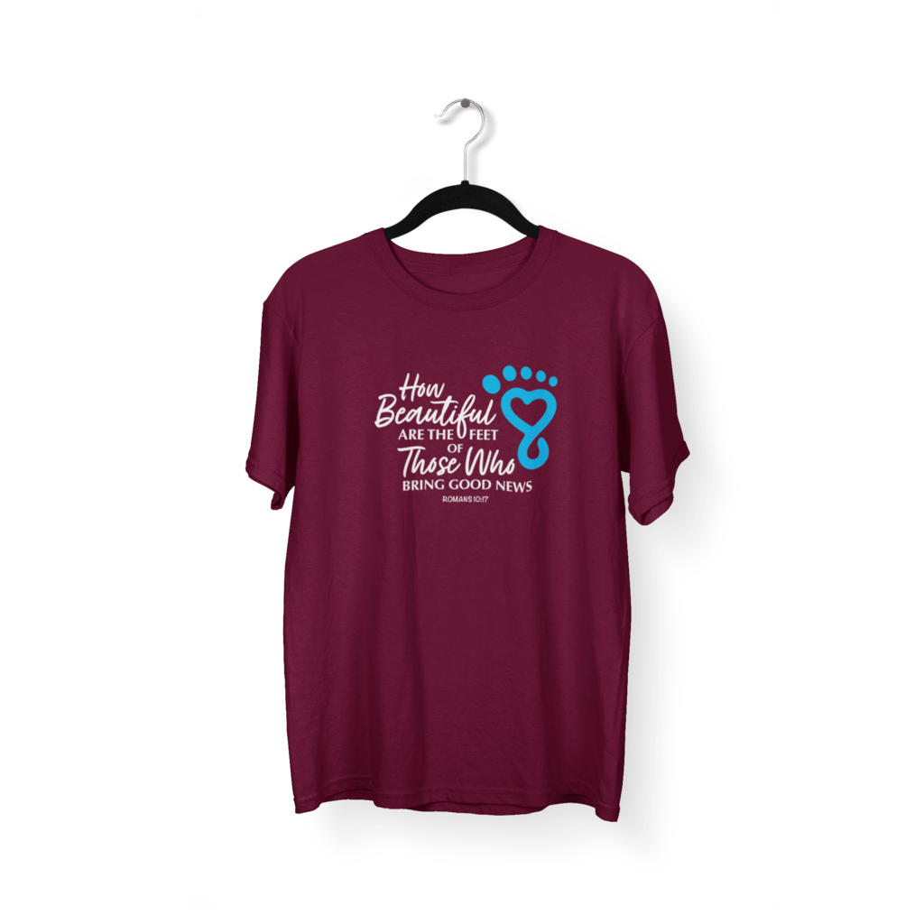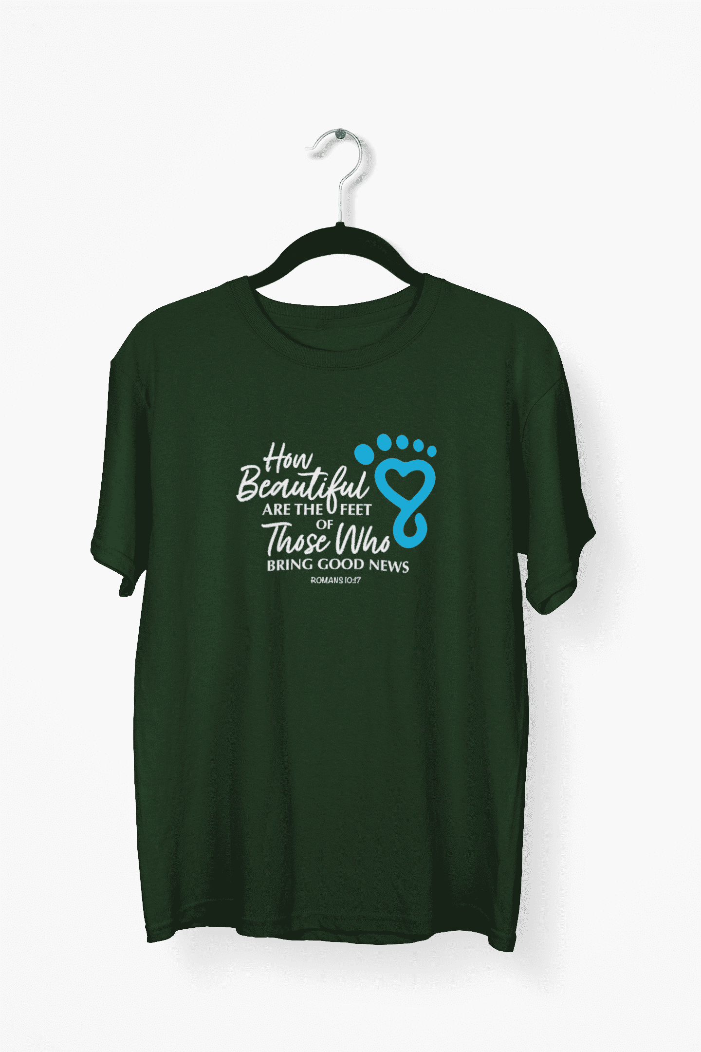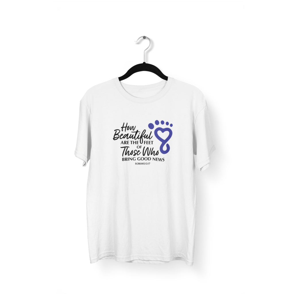 How beautiful are the feet of those who brings good news, the Bible verse, relates to their actions, not their physical beauty. The arrival of the swift-footed messengers who bring the message of love is wonderful. The beauty of these feet is meant to convey the rapid approach of the messenger, who brings tidings of joy, peace, and salvation. The sight of these messengers, with their beautiful feet carrying them swiftly across the mountains, would have been breathtaking and uplifting. Wear this to share your love and the good news.