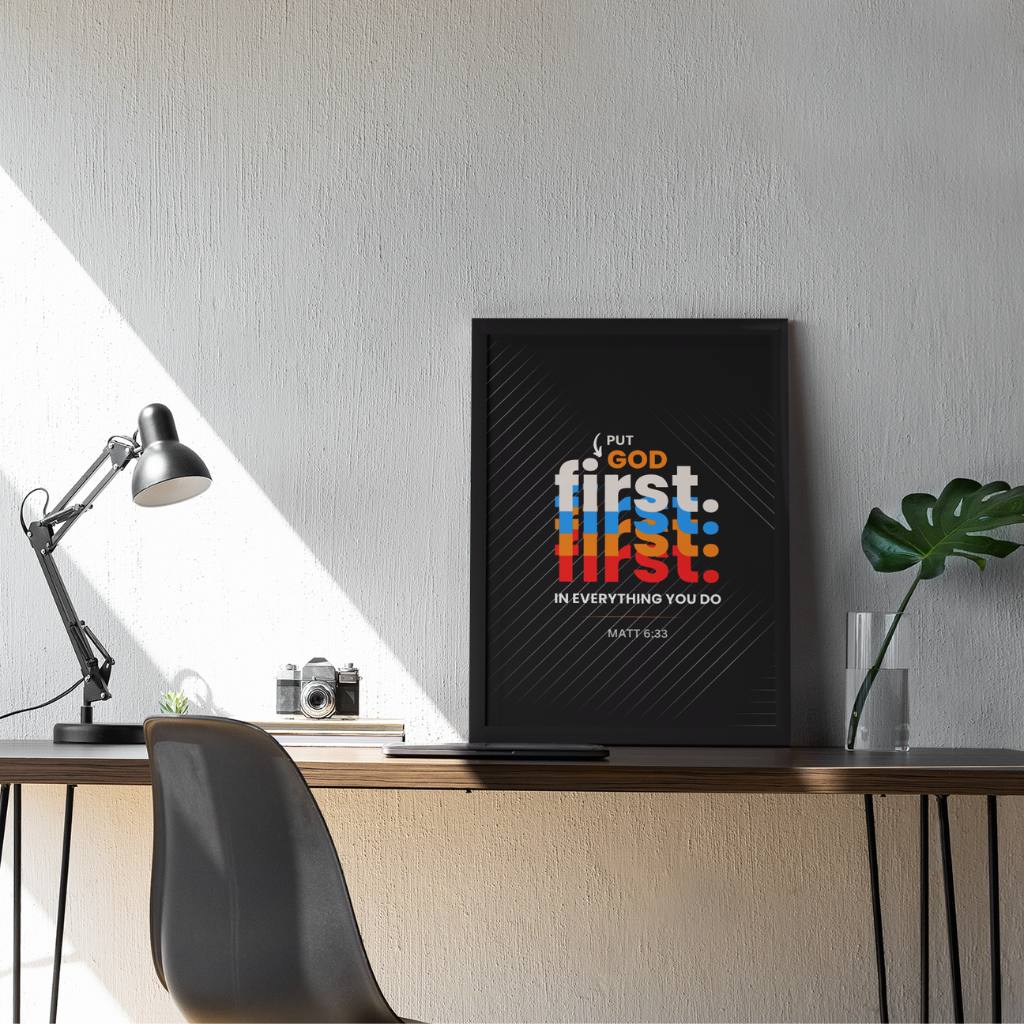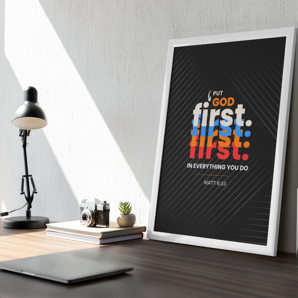 Ideal for personal reflection or as a heartfelt gift, the "Put God First" frame is not just a decoration but a celebration of the enduring principles that guide us. Available now in two versatile sizes, A4 and A3, to suit different spaces and preferences.