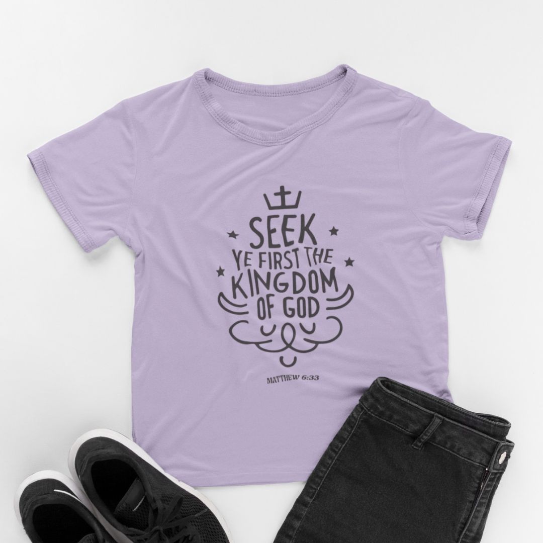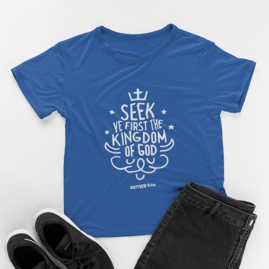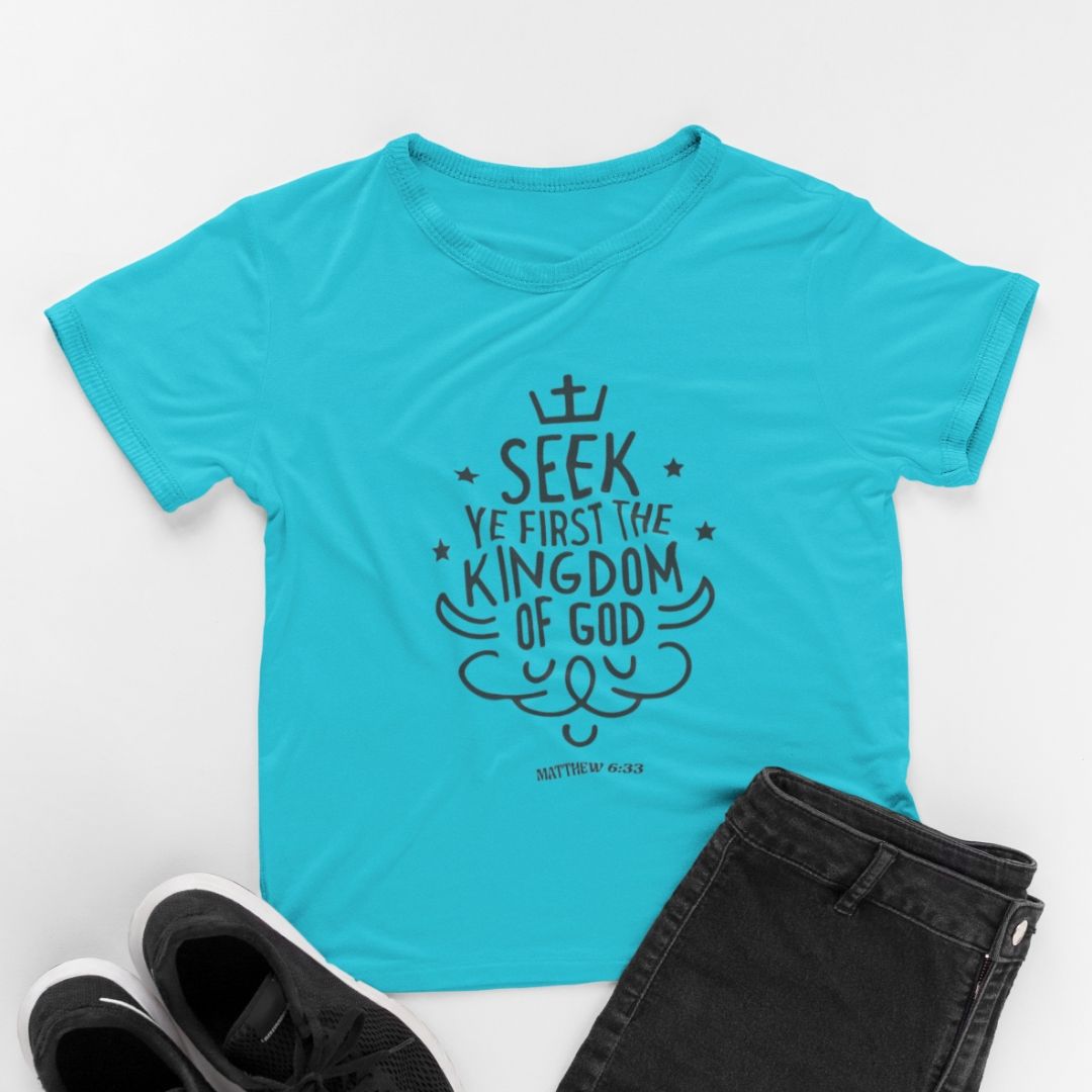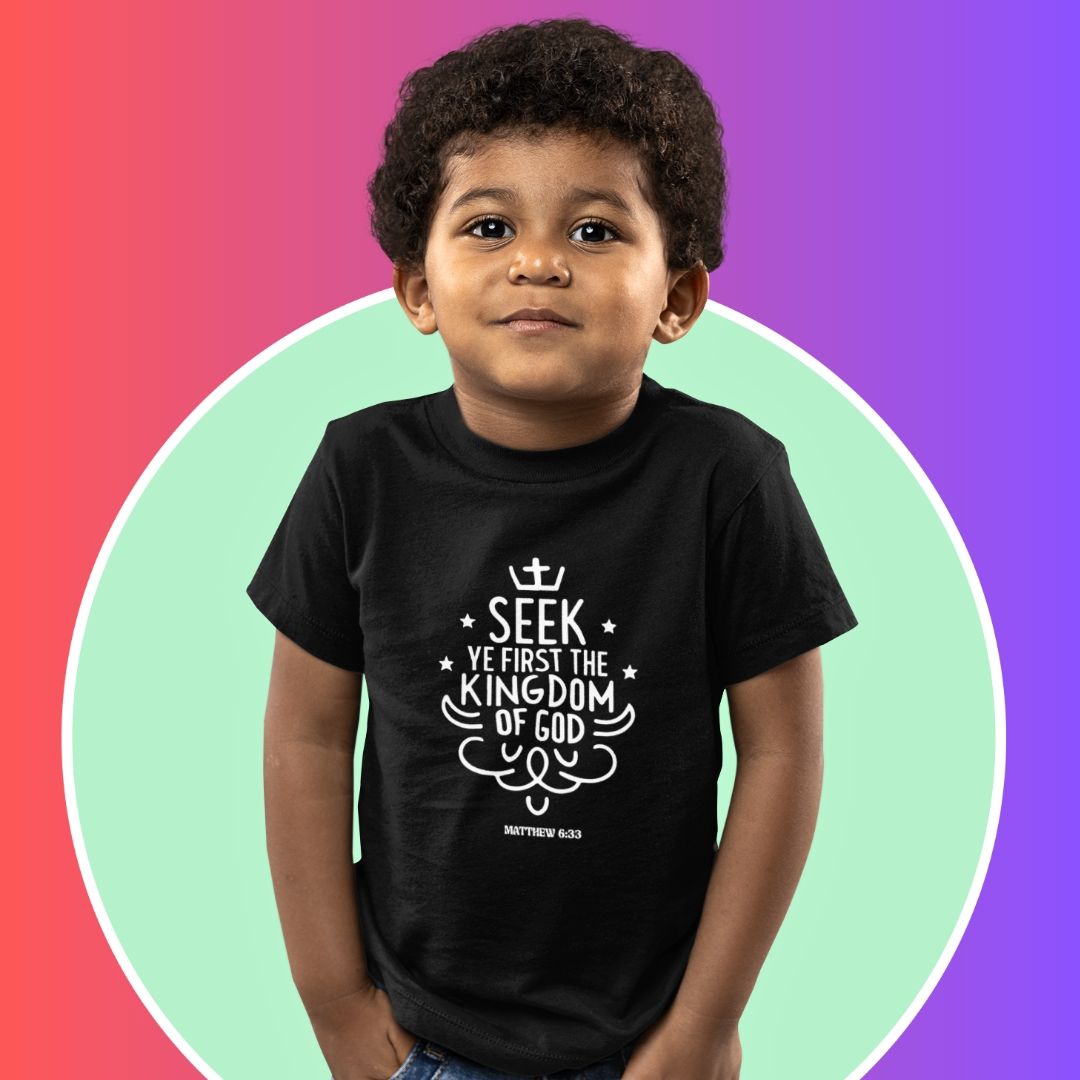 Unleash your child's inner strength and bravery with our Seek Ye First Christian Gospel Kids' Tee! Crafted with love and care, this tee is more than just a piece of clothing; it's a message of empowerment and confidence for the little ones.
