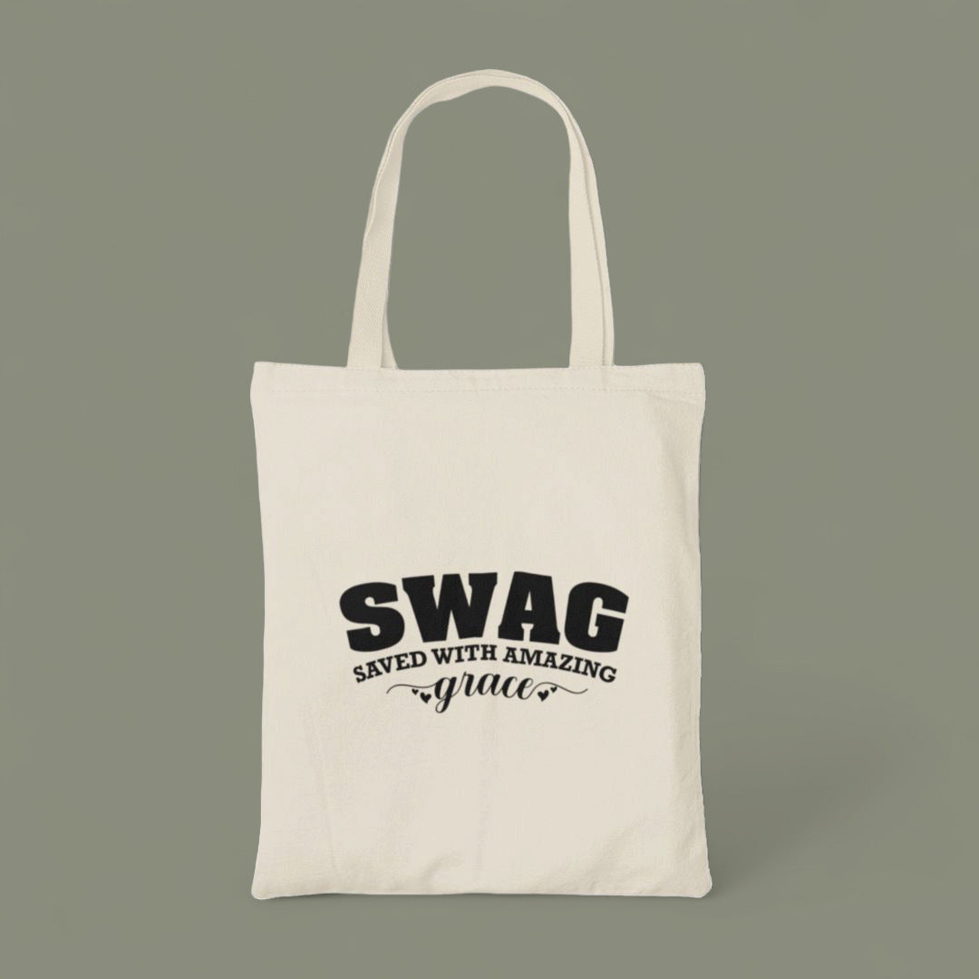 Celebrate the abundance of blessings in your life with each step you take. Elevate your daily essentials with the "SWAG" Christian Canvas Tote Bag, available in classic black or natural white. Carry your faith and blessings with style, and inspire others along the way. Don't miss out – secure your Christian canvas tote bag today and embrace your journey with gratitude and grace!