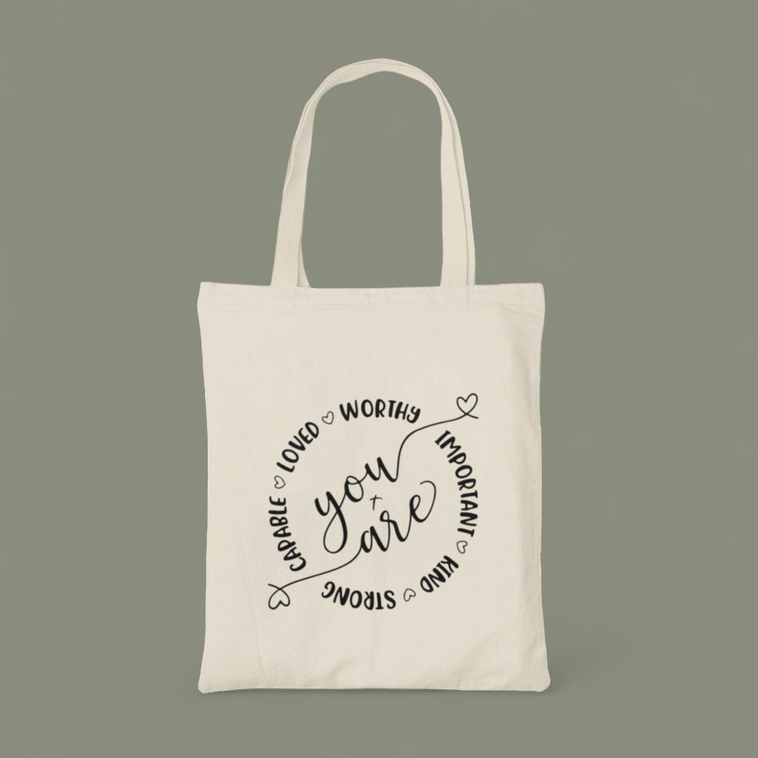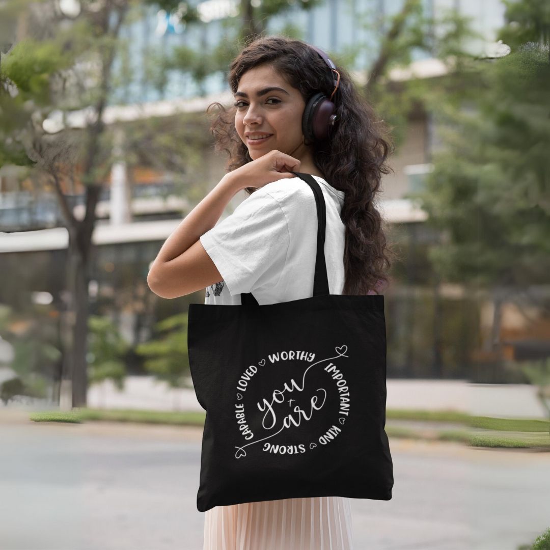 Celebrate the abundance of blessings in your life with each step you take. Elevate your daily essentials with the "You Are" Christian Canvas Tote Bag, available in classic black or natural white. Carry your faith and blessings with style, and inspire others along the way. Don't miss out – secure your Christian canvas tote bag today and embrace your journey with gratitude and grace!